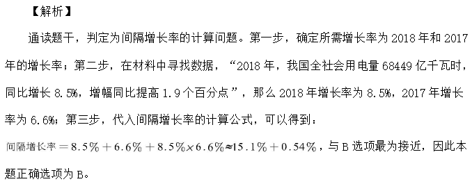【例 2】2018 年,我国全社会用电量较 2016 年增加了约:( )